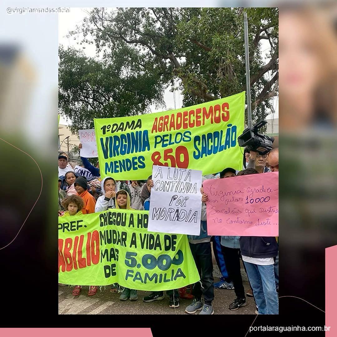 Em um vídeo que circula no Instagram, a emoção é palpável. Manifestantes seguram cartazes com a frase “1ª DAMA AGRADECEMOS VIRGINIA MENDES PELOS 850 SACOLÃO”, uma clara demonstração de gratidão. A iniciativa, que visa auxiliar na construção de moradias populares e na mitigação dos desafios enfrentados por essas comunidades, ressalta o trabalho voluntário e o compromisso da Primeira-Dama.