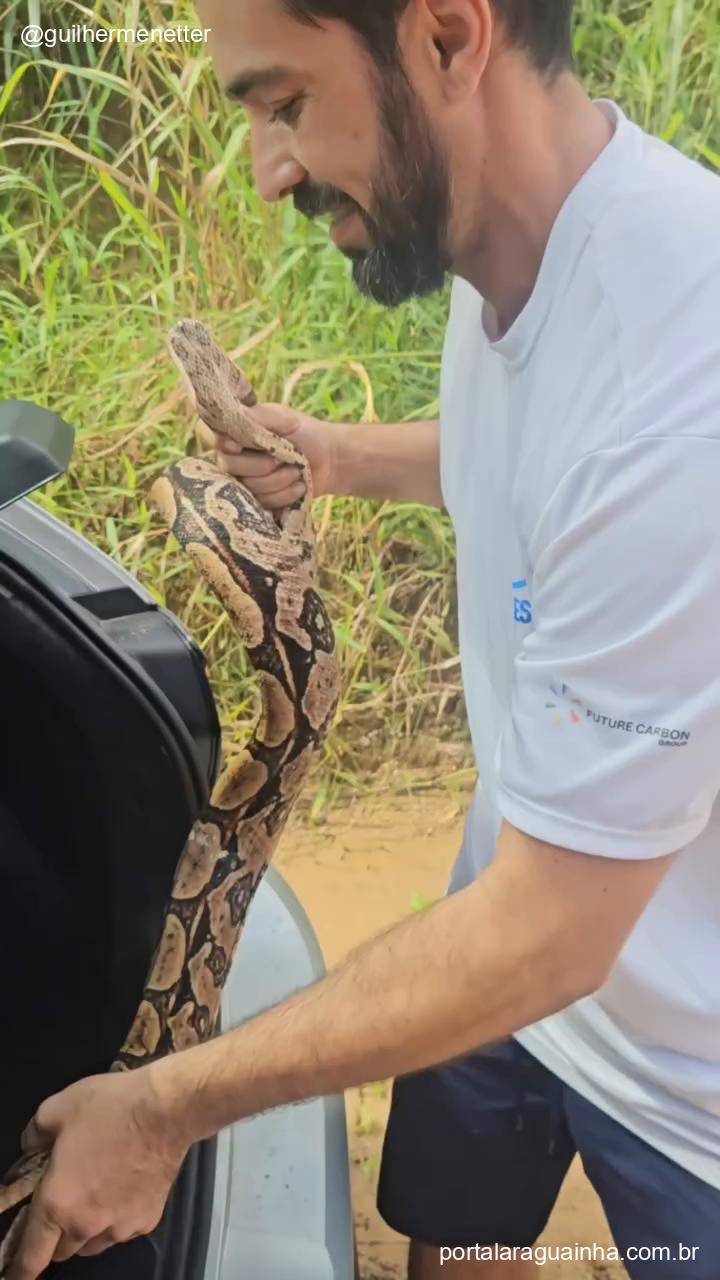 O vídeo, compartilhado por Guilherme Netter, um influenciador com quase 100 mil seguidores, mostra o momento em que a enorme serpente é retirada de um veículo e preparada para retornar ao seu habitat natural. A cena é de tirar o fôlego, com o responsável pelo resgate demonstrando cuidado e respeito pelo animal.