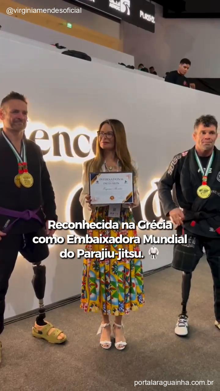 Um dos pontos altos do vídeo é o reconhecimento internacional. Virginia foi nomeada Embaixadora Mundial do ParaJiu-Jitsu na Grécia, uma honraria que celebra seu trabalho em promover a inclusão e a transformação social através do esporto. Além disso, ela se tornou a única brasileira a receber o 26º Botom da Federação Internacional de Ju-Jitsu – um símbolo mundial do programa ‘Jujutsu For Good’.